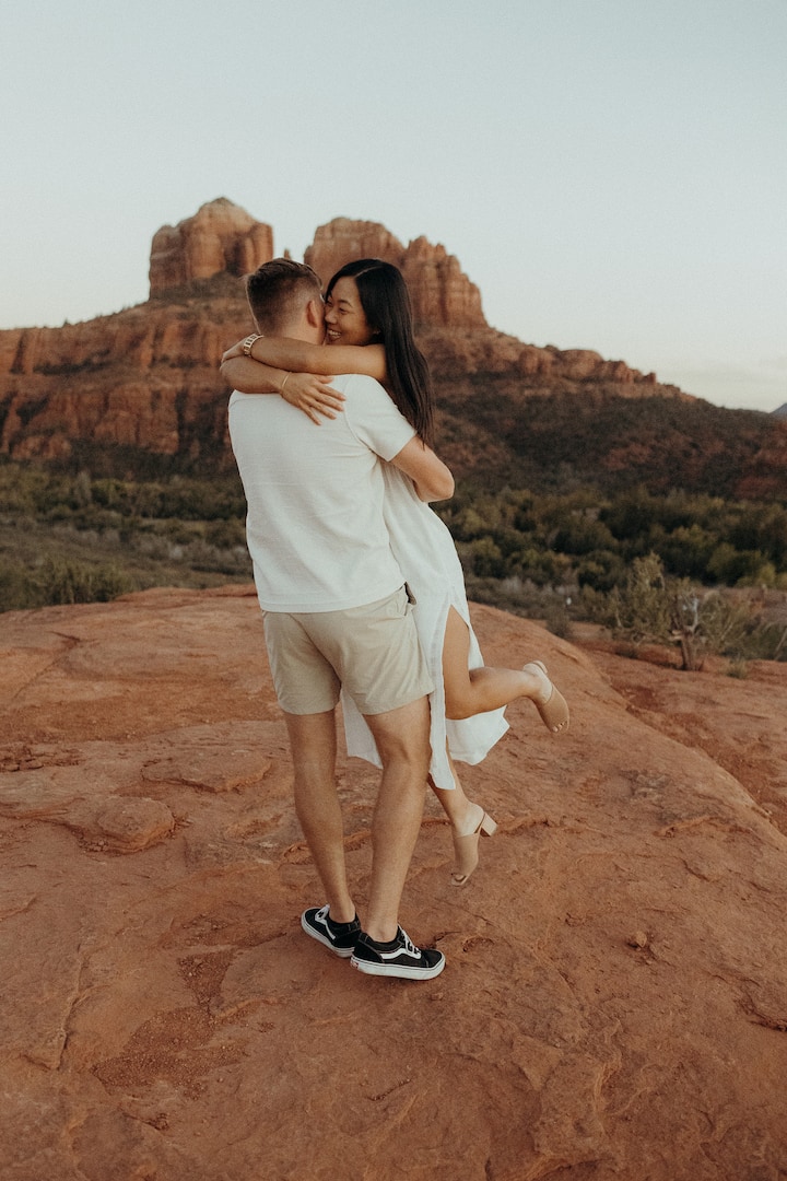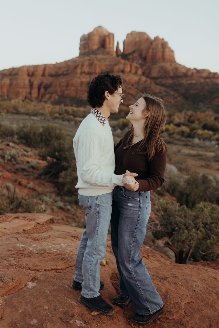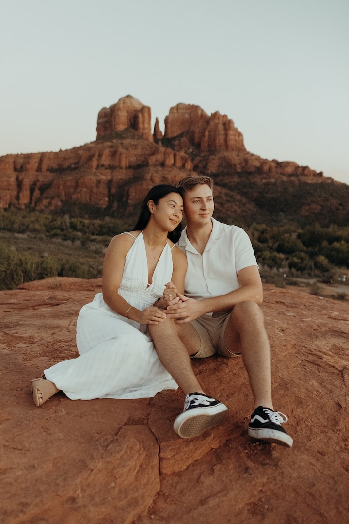 在大教堂岩石的美麗景觀下,拍攝家庭或情侶肖像