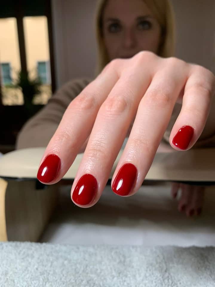 半永久美甲,包含指甲和甲小皮護理,以及塗抹半永久指甲油。 可使用 2 至 3 週。 拋棄式或高壓滅菌的 S 級工具。
