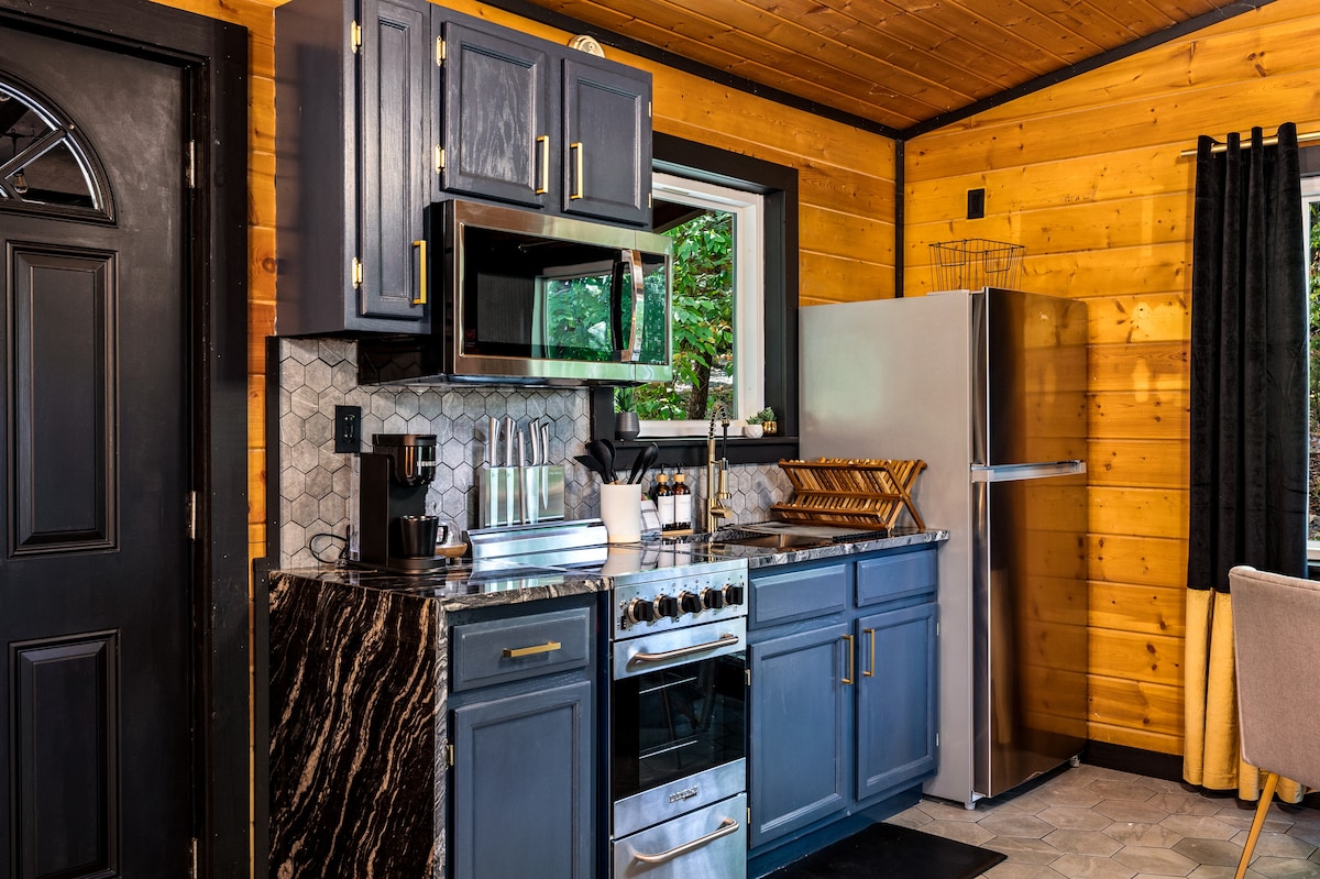 按✅摩浴池 ✅山景 ✅火坑(提供丙烷) ✅電壁爐 ✅濕房(大型浸泡式浴缸和淋浴間) ✅Blackstone Grill (提供丙烷) ✅大型有蓋門廊,配有戶外用餐區 ✅全新現代精緻小木屋( 600平方英尺) ✅ 私人門禁社區/保安 ✅ 社區泳池(季節性)、網球場、匹克球場和遊樂場! ✅1間臥室(加大雙人床)/1間浴室,配有沙發床(雙人床) ✅洗衣機、洗碗機、烤箱和冰箱! ✅老式桌遊 ✅布袋球板 ✅ 唱片機