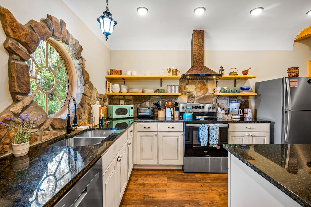 Welcome to your romantic woodland retreat: - Sleeps 2 | 1 bedroom | 1 bed | 1 bath - Private movie theater & heart-shaped jetted tub - Outdoor hot tub pergola & fire pit for two - Spa-inspired bathroom w/ dual shower heads & bathrobes - Fully equipped kitchen & BBQ grill for intimate meals - No pets allowed & surrounded by nature