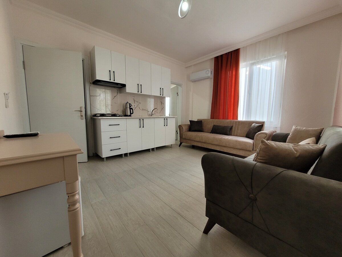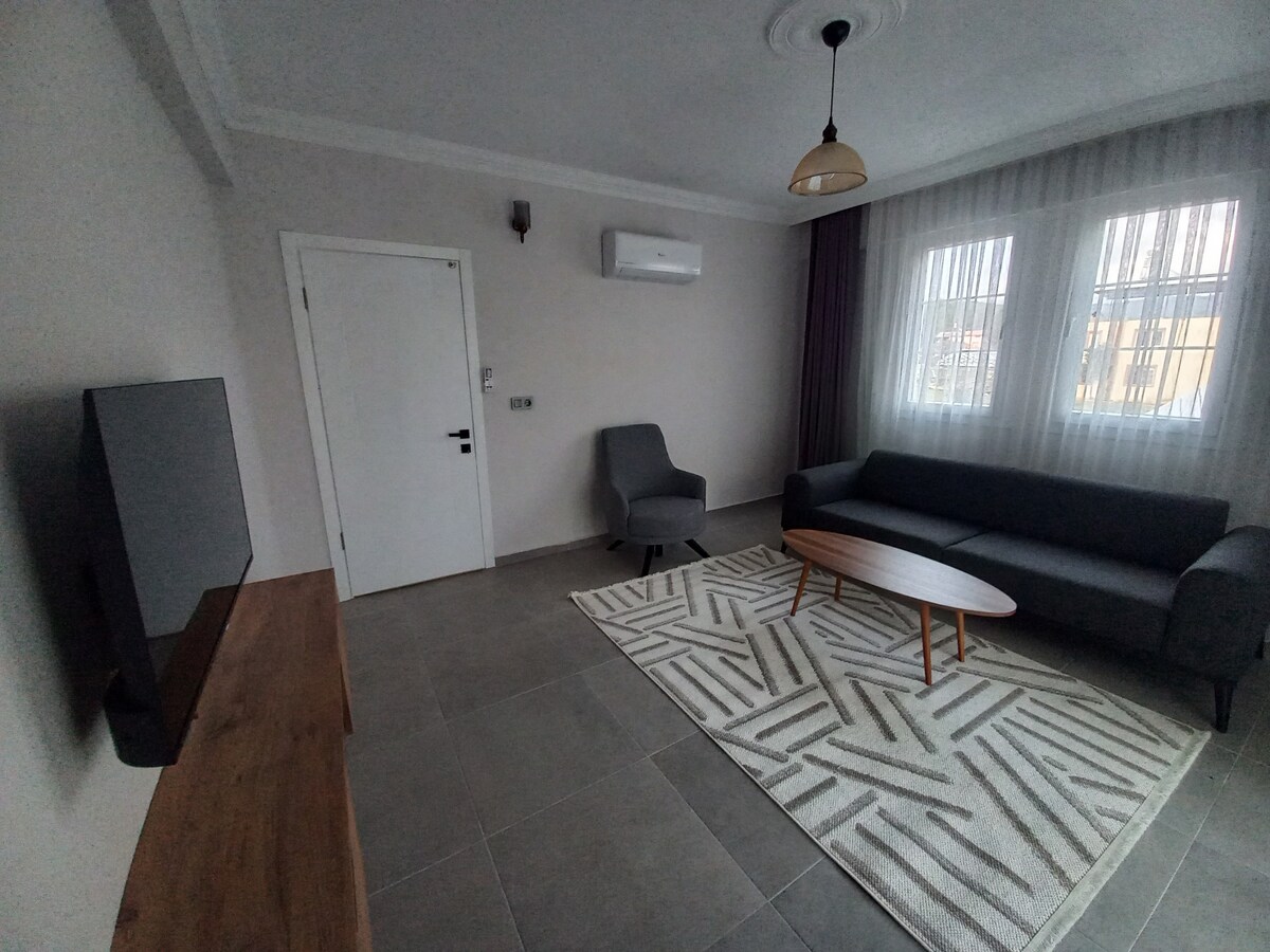 步行100米即可抵達普拉哈超市( Migros、bim、A101等) ,如餐廳咖啡廳和醫院藥店,海灘邊有一個馬丁車Fethi Bey公園。 如有需要,可以加一張單人牀和一張嬰兒牀。 所有房間都有空調,有24小時熱水和不間斷的網路。 所有廚房設備和清潔用品均配備智慧LED電視( Netflix、YouTube等) ,提供不間斷的網路和24小時熱水
