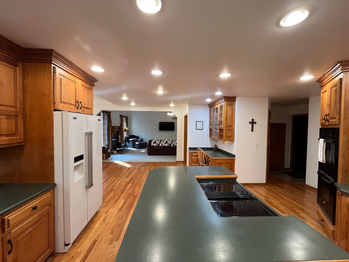 Super Clean, Quiet & Cozy! 🐕Pet friendly 🙂Event Room Available -Ask!! (Additional fee ) 90 mi to Chicago! 2 hrs to the Dells! 5 min west of Hwy 39/51 15 min to NIU 45 min to Rockford Walking and bike trail nearby! Beautiful home! Super clean! Monday-Sat check: 3 PM Sunday Check-In: 5 PM Our eight-jet power shower will relax those tired muscles after a full day of activity. A soak in our modern,free-standing tub will sooth and your worries away. A well stocked kitchen awaits you!