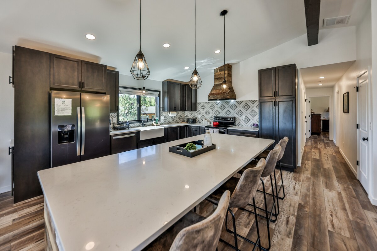 這座4間臥室、5間浴室(3間套房)的小屋位於2.3英畝的土地上,等待您來到Grand Lake度假! 這間新翻修的房源擁有3,400平方英尺的精心設計的起居空間,全都在一層,無論季節如何,都適合任何13人的團體 從您的家庭基地出發,您將距離Shadow Mountain Lake和船舶碼頭(租用浮船)1/2英里,距離Grand Lake鎮5分鐘車程,距離洛磯山脈國家公園7分鐘,距離Ski Granby Ranch 20分鐘,距離冬季公園滑雪度假村45分鐘!