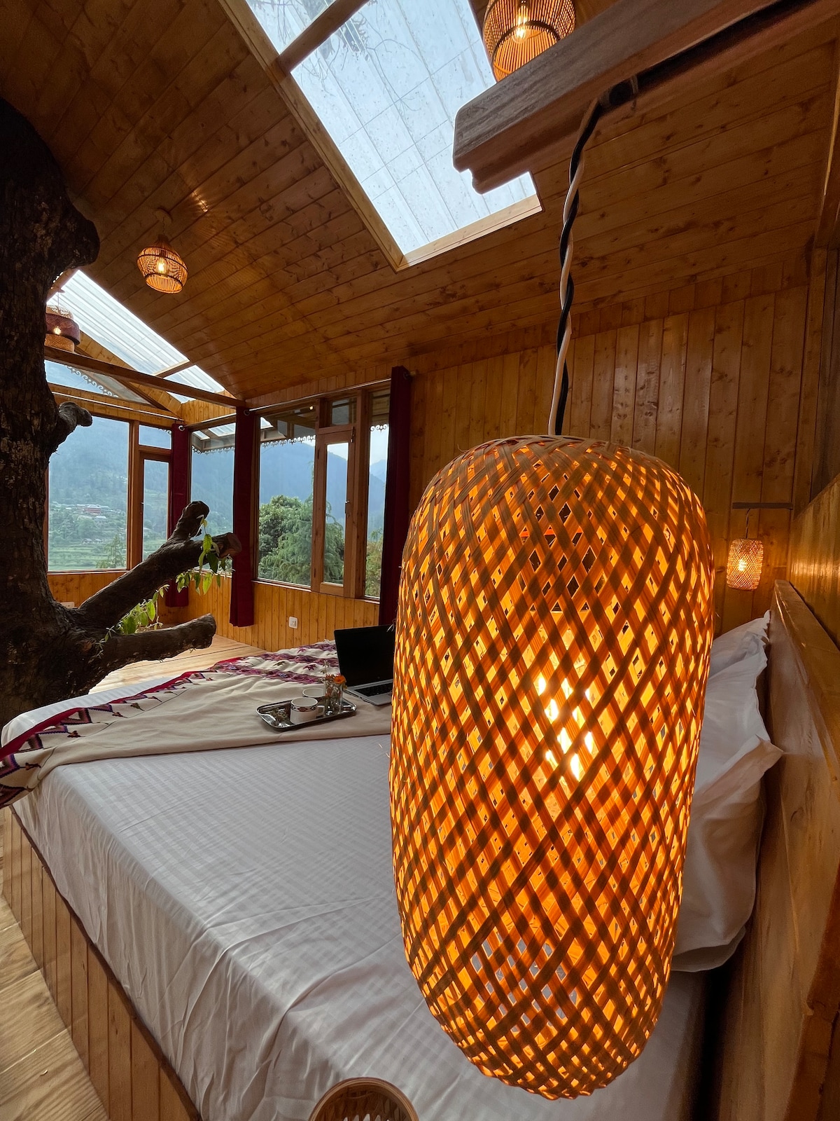 體驗大自然和奢華的完美融合,坐落在Jibhi附近的Tandi山頂上。 在溫暖的泡泡浴中享受奢華的住宿體驗,同時直接從浴缸欣賞令人驚嘆的景色。 坐落在遠離道路和交通噪音的地方,您唯一會遇到的聲音是鳥類的旋律鳴叫。 透過全玻璃小木屋,您可能會發現一隻飛的鬆鼠,或在寧靜的夜空中看到一顆流星。 放鬆身心,享受這個時尚、寧靜的度假勝地的寧靜。