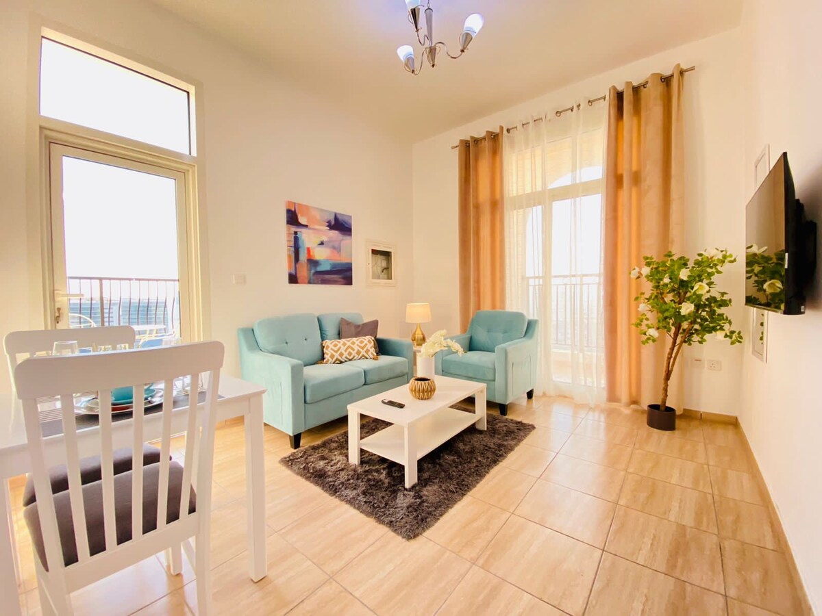 舒適的單間臥室,設備齊全的公寓,配有大陽臺,可享用咖啡或與朋友聚會! 您將毗鄰迪拜博覽會,距離Al-Maktoum國際機場僅8分鐘,步行25分鐘即可抵達迪拜遊艇碼頭人潮擁擠的中心。 這間位於迪拜南部的舒適單臥室公寓是2020年博覽會期間的理想住宿地點,公寓最近進行了翻修,配有簡單但舒適和完整的家具。位於中樓的新住宅區。
