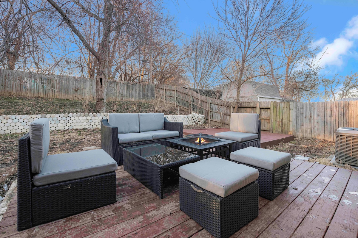 把整個家庭帶到這個充滿樂趣的好地方。 三間臥室和額外的閣樓空間,讓這個房子非常適合家庭入住。 充足的街外停車位,有大型圍欄院子、火坑、露臺和地下室遊戲室,為每個人提供空間。 大型廚房和用餐區可供大小餐點使用。 位置便利,輕鬆前往堪薩斯市中心、賽車場、傳奇和廣場購物中心、箭頭和考夫曼體育場和聯合車站。
