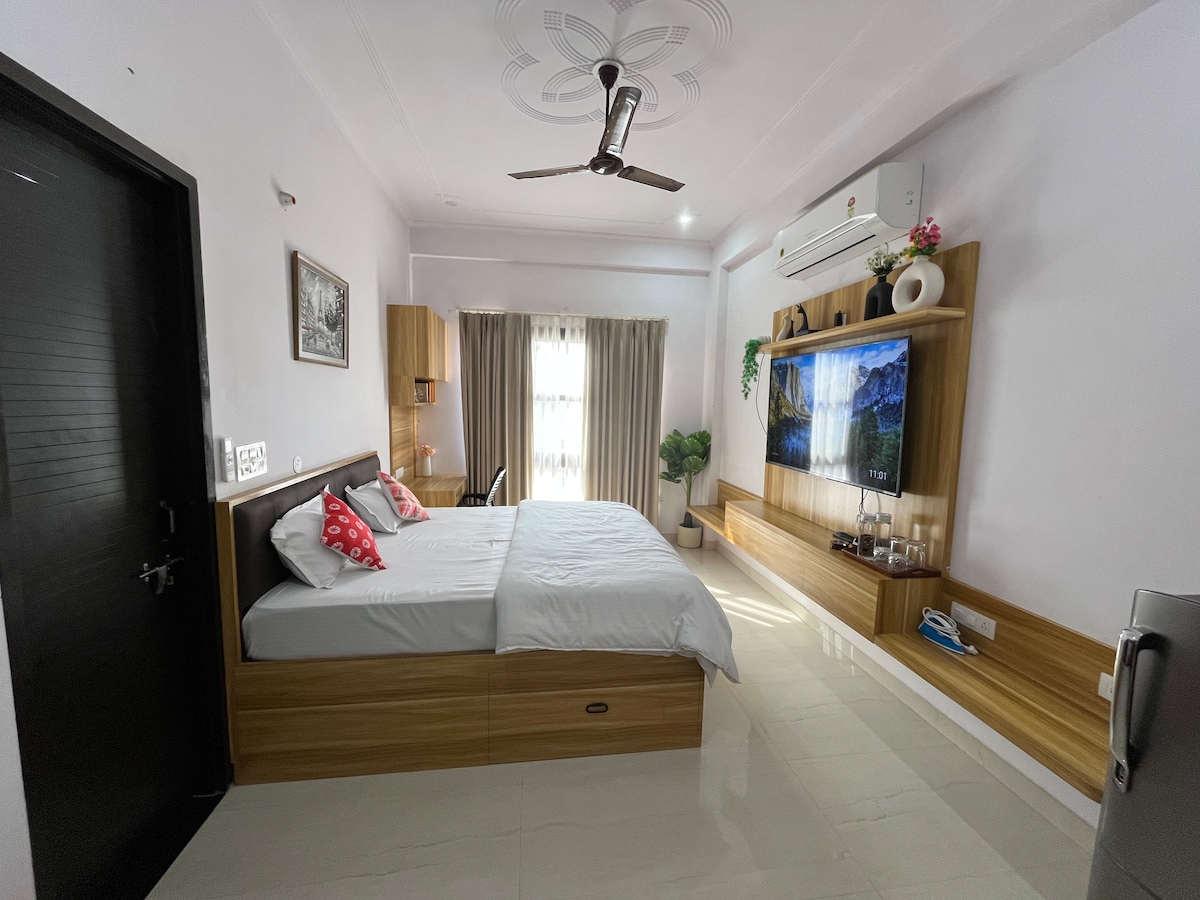 歡迎來到我們位於Jaipur的舒適單間公寓—這是一間時尚、精緻的住宿,位於市內最優質和最安全的區域之一。 我們的房源地理位置優越,距離世界貿易公園(WTP)、Jaipur機場和標誌性的Patrika Gate僅幾分鐘路程 單間公寓設計精心,配備開放式通風良好的布局,配備舒適的床鋪和整潔的小廚房,可泡茶/咖啡 無論您是來探索Jaipur、參加會議、在WTP附近購物,還是趕快搭乘飛機,這個空間都能讓您輕鬆入住。