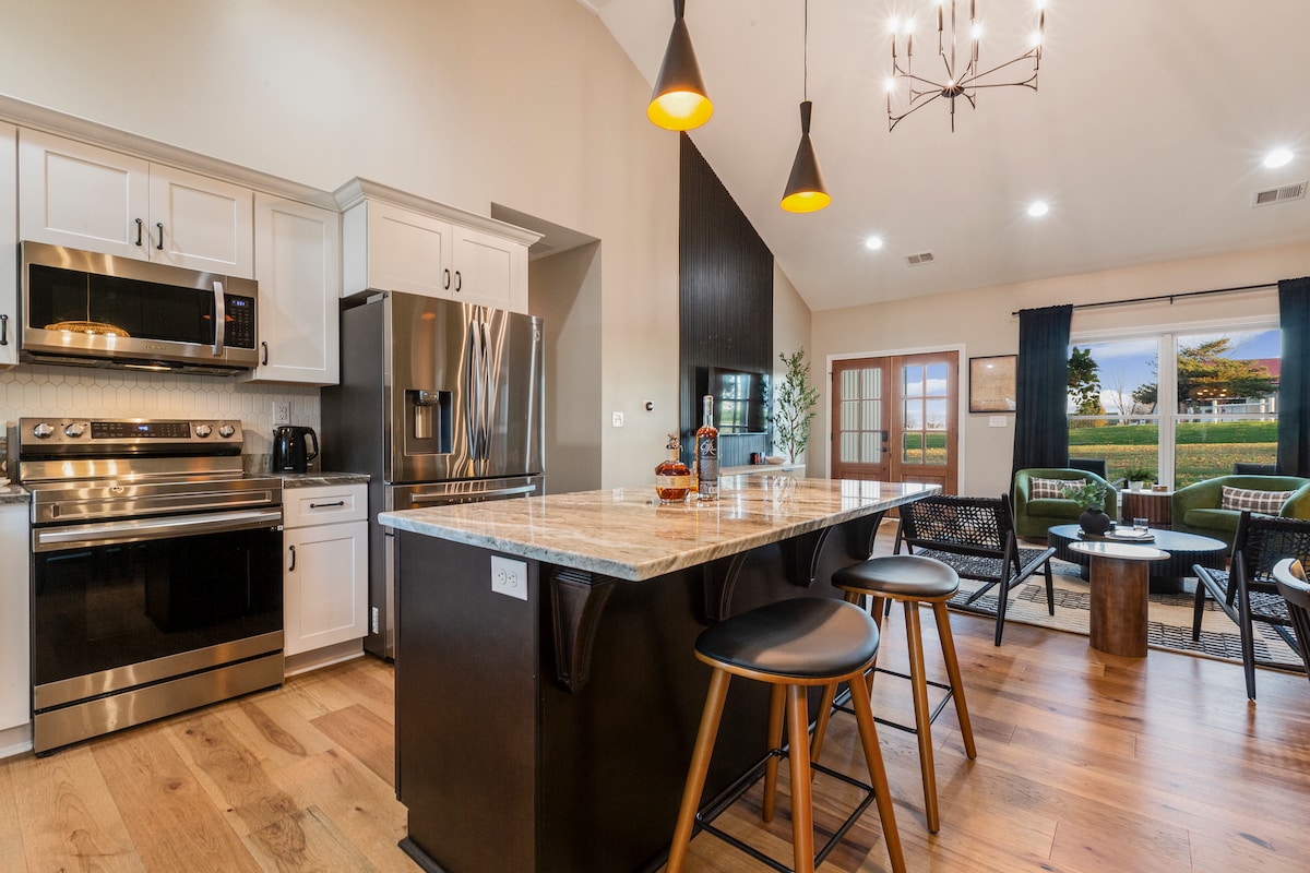 Brand-New Modern Farmhouse! Over 3,300 sqft on 5 acres. 4 private bedrooms, hot tub, massive firepit, fully loaded kitchen, full seclusion, endless amenities and games throughout!! Just minutes to Kentucky's most famous distilleries! ★★★★★ "This place was pristine! Easy instructions, amazing amenities, so much to do in the house!" Send us a message with any questions!