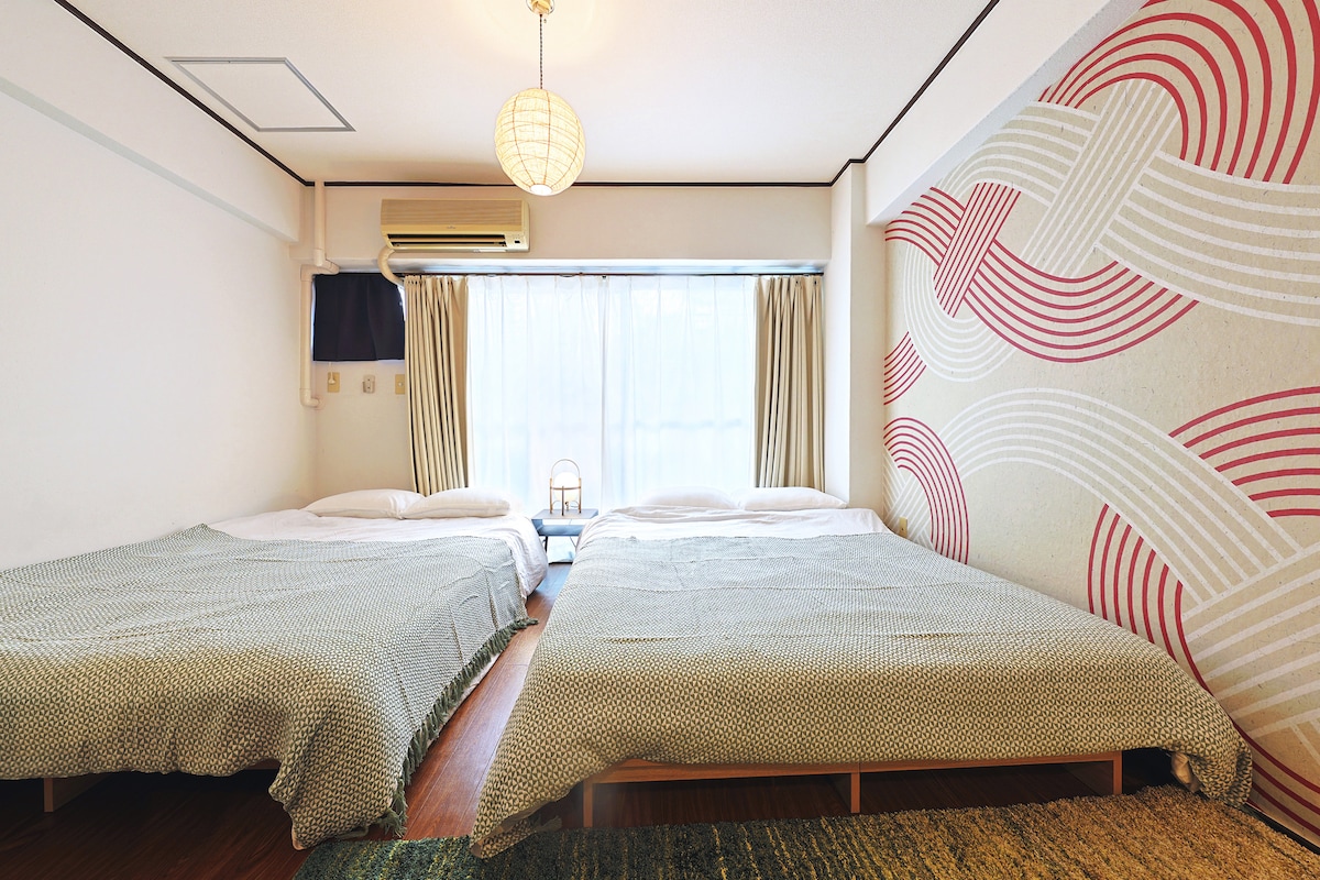 東京日式榻榻米和风客房|龙与富士山手绘壁画|地铁步行6分钟