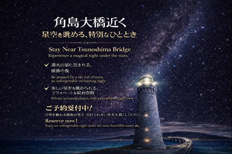 距離角島大橋僅2分鐘路程 | 免費停車 | 靜謐海景 | 日落美景 | 地勢較高