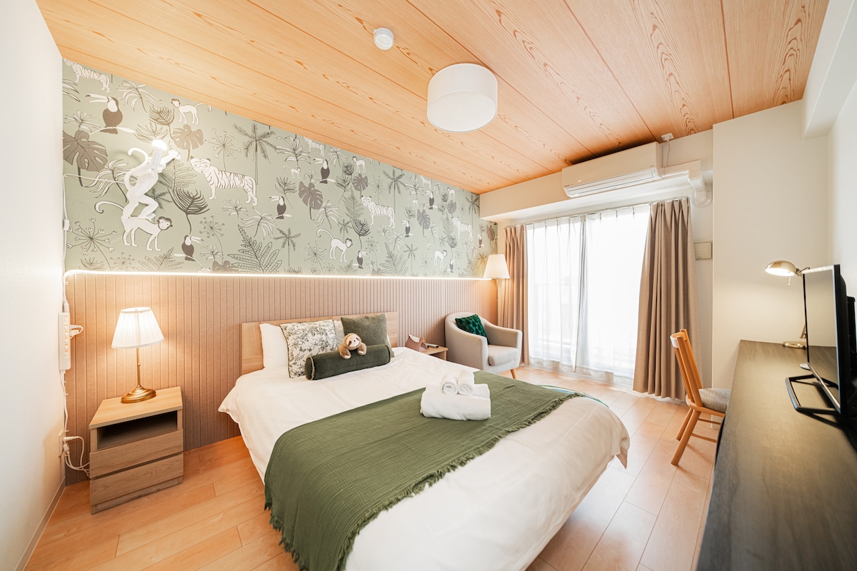 [Queens]舒適簡約風雙人公寓丨1K電梯公寓WiFi廚房獨立衛浴丨動物園前站2分鐘丨心齋橋