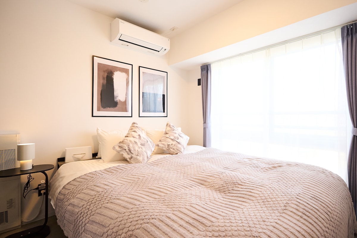 *札幌中心部*美しい川の眺め*快適な2BR*薄野徒歩5分*狸小路徒歩10分*Wi-Fi*長期滞在*