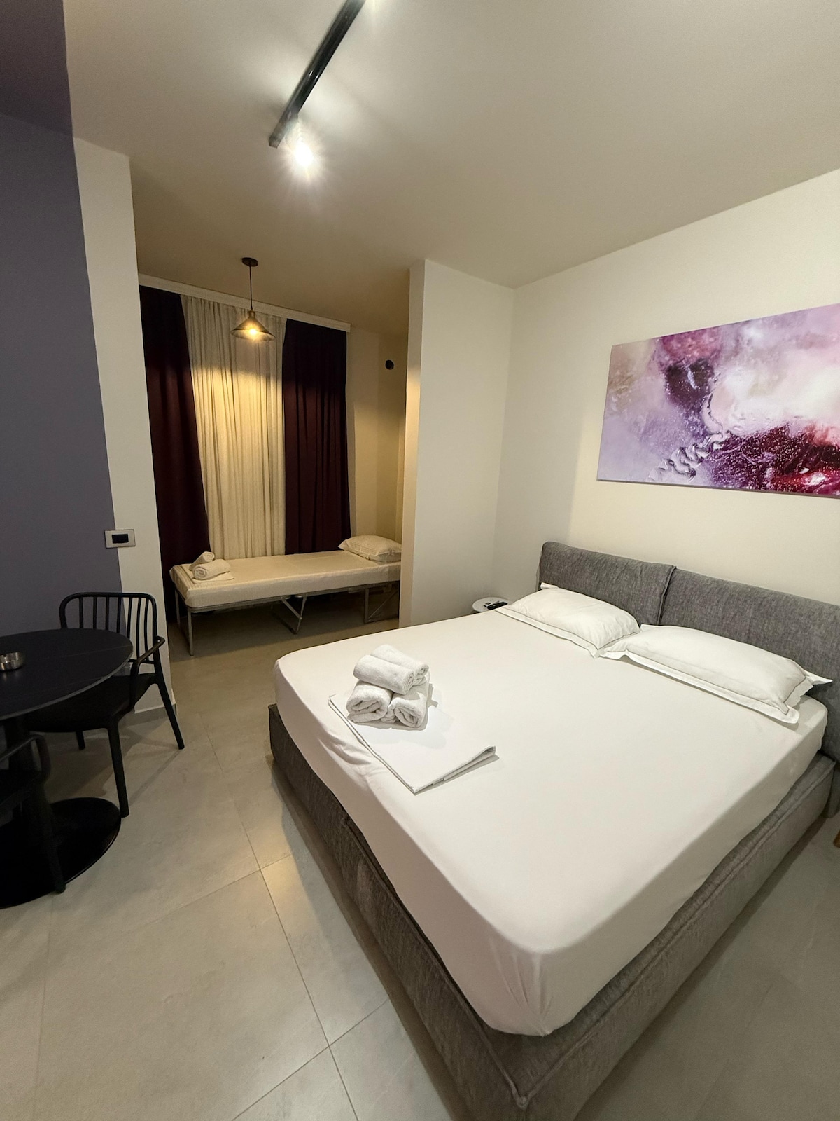 💜 紫色單間公寓–位於斯庫台市中心的舒適與時尚! 探索紫色單間公寓,這是一個33平方公尺的現代空間,非常適合情侶、獨行冒險者或商務差旅人士。 距離Sheshi Demokracia、巴士站、Pedonalja和Marubi博物館僅幾步之遙,是探索這座城市的完美基地。 ✅ 中心位置 ✅ 獨立衛浴、冷氣、快速 Wi-Fi ✅ 自助入住 ✅ 小廚房和安靜空間 ⛔ 沒有陽臺(室內明亮,設計精心) 立即預訂,在斯庫台享受順暢又時尚的住宿體驗!