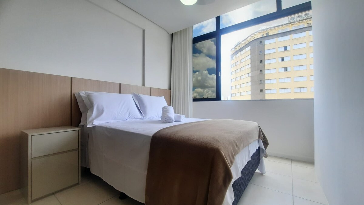 Super cozy and functional space in the center of Belo Horizonte. Designed with a modern style and the warm hospitality that only a home in Minas Gerais can offer! 🏠 Integrated space with: ➤ Queen-size bed with 300-thread-count sheets and a spacious, comfortable sofa bed. ➤ Air conditioning, total blackout curtains, and a spacious desk. ➤ Bathroom with hair dryer, practical and fully equipped kitchen, and washing machine. ➤ Electronic door lock, television, and Wi-Fi.