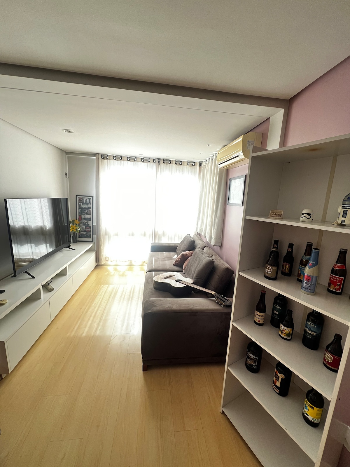 全新的43平方公尺單間公寓,位於TREND CITY,可欣賞瓜伊巴湖、湖岸和馬里尼亞公園的全景(16樓),公寓配有完整的基礎設施、24小時禮賓服務、停車位、健身房、20公尺溫水泳池。 標準雙人牀、使用筆記本電腦的空間、冷熱空調24,000、智慧電視50、可收看250個頻道的有線電視網、250 mbps的Wi-Fi、燒烤坑、洗衣機和烘乾機、熨鬥、吹風機、微波爐、空氣炸鍋、標籤和電子鎖。