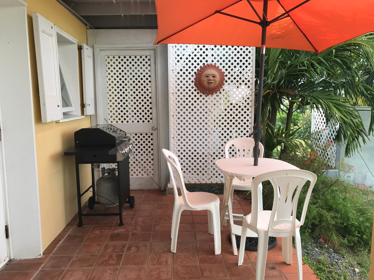 單間公寓,花園露臺,可欣賞加勒比海和巴克島的美景。位於Estate Green Cay的可愛街區-距離Christiansted東部20分鐘車程。通往梅干灣海灘的路徑距離公寓僅3分鐘步行路程。還可以(步行或自動)前往其他兩個相鄰的海灘:Cheney Bay和Coakley Bay。該區域也非常適合在安靜的道路上慢跑和漫步。