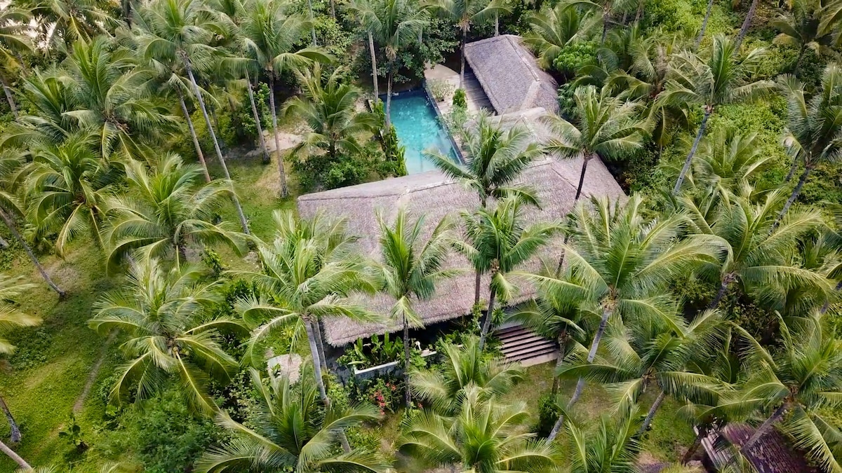 Modern native island living in Pacifico. Our spacious family villas are filled with natural light and fully furnished with all you need on the island including back up generator. Private air-conditioned bungalows nestled in a tropical jungle just a short 150m walk from the beautiful beach and surf break in the heart of Pacifico the surfing capital of the North of Siargao.