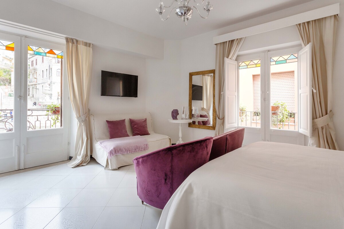 QUADRUPLE ROOM WITH KITCHEN ,BALCONY AND SEA VIEW(4 total beds) 40 sqm divided as follows: - Private entrance; - 1 Bedroom with 1 double bed + 2 single beds with Balcony overlooking the sea and the Valley of the Temples - 1 Private bathroom - 1 Private kitchen (kitchenette, refrigerator, espresso machine, filter coffee maker, kettle, microwave,dishes) CITY TAX on arrival