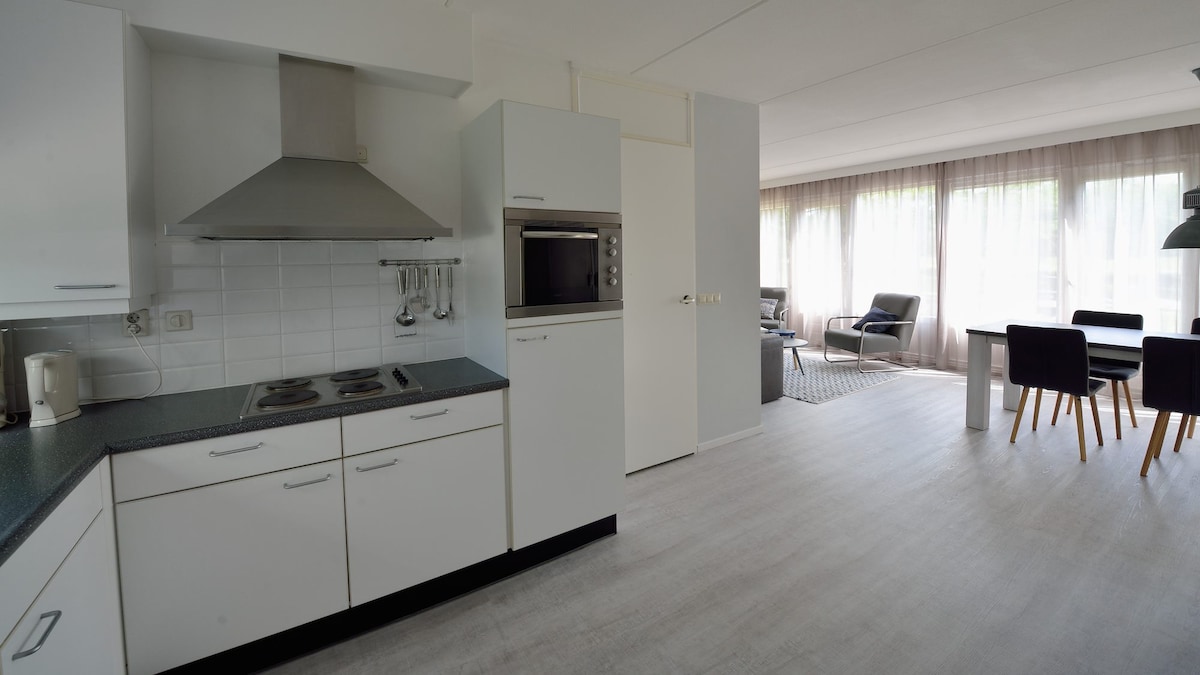 2024年5月開放;平靜、空間、隱私,從14: 00到日落,在露臺上曬太陽。 超高速5G網路、柔軟的牀( 140x200公分)浴室有手淋浴間、配有4爐爐的完整廚房、洗碗機、有冷凍室的冰箱和烤箱。 桌子上有漂亮的座椅,可供用餐或工作。 兩張扶手椅可供放鬆,露臺上有椅子和桌子,可俯瞰鄉村美景,地平線上有Midwolder森林。