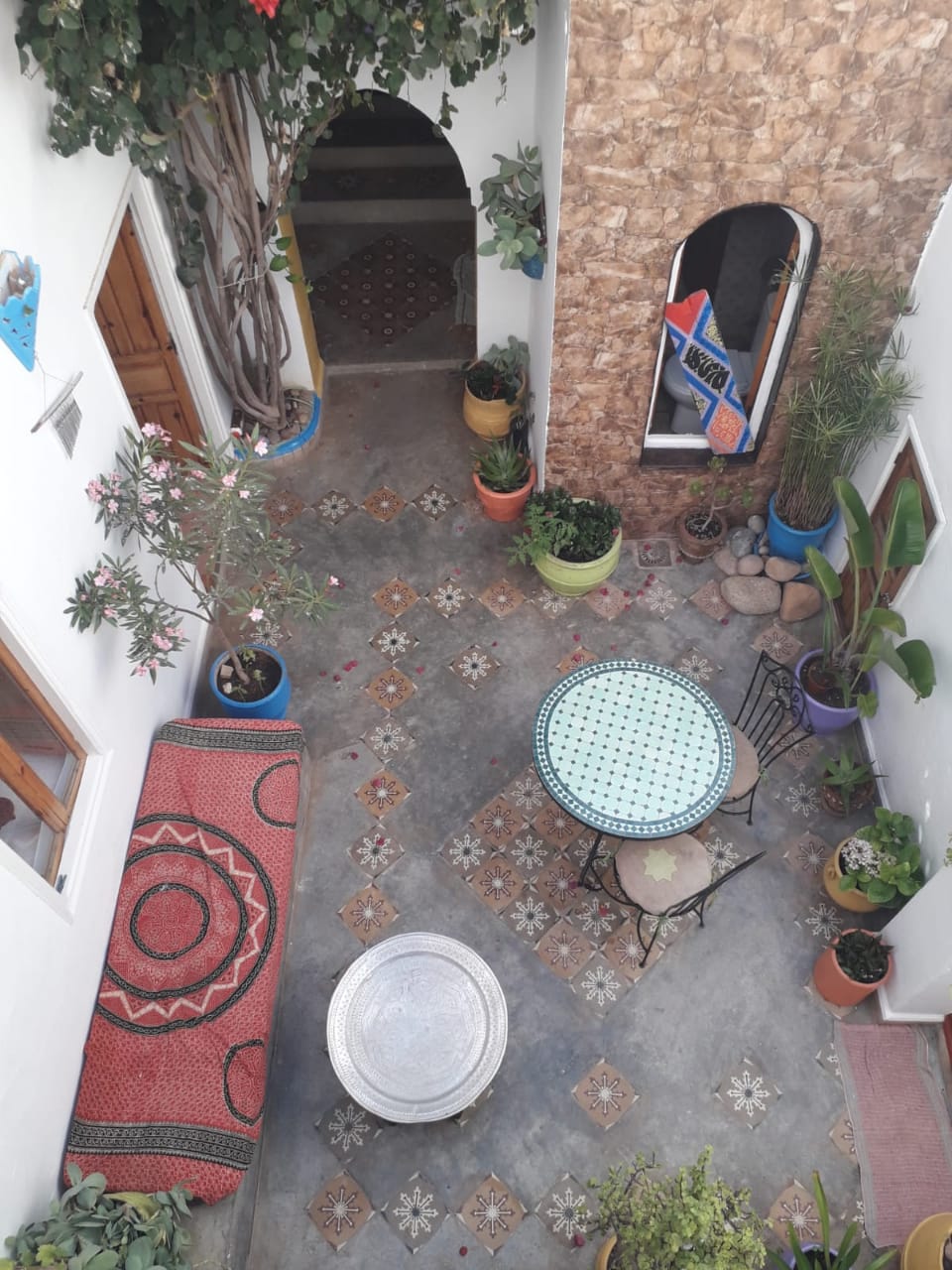 Cet beau Riad idéal pour 4 personnes est situé dans un quartier calme à 5 min de la plage et 10 min du centre-ville. Il comprend une chambre à coucher avec un lit double et une chambre avec 2 lits simples. Il y a un grand salon marocain, une cuisine équipée, une salle de bain, une cour intérieure fleurie ainsi qu’une confortable terrasse. Activités à faire dans la région: plage, surf, souk, balades en montagne, découvertes des villages avoisinants, visite d’une oasis dans le désert, etc.