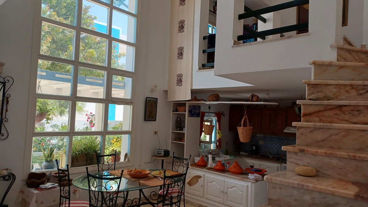 El houch is an apartment decorated in a traditional Tunisian style displaying a unique and typical style . 2 min walk from the beach 3 km To Port El Kantaoui ( Harbour Marina ) 3 km from the Mall Of Sousse ( Shops, Cinema, children's parks and restaurant ) 10 km from downtown Sousse ( Sousse Medina, Archaeological Museum )