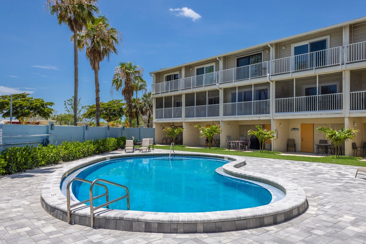 浪漫蜜月套房 💕 這間1間臥室/2間浴室的連棟房屋距離Siesta Key Beach僅幾步之遙,非常適合兩人入住。 享受2個陽臺,可欣賞海灘、泳池和花園的日落景觀,中央空調和加熱的潟湖式泳池,讓您在夢幻的夜晚遊泳。 免費Wi-Fi、沙灘椅和1輛車的停車位,讓這裡成為情侶的終極度假勝地。