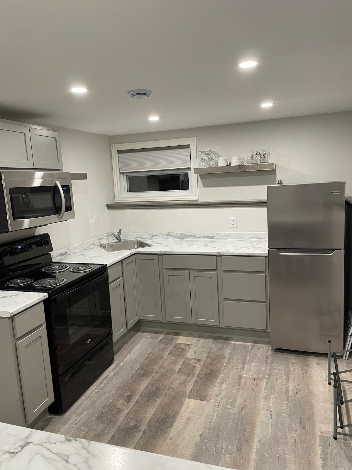 現代豪華公寓套房、整套公寓、裝潢高雅、地面私人入口、全功能廚房、地暖、烤肉、洗衣機和烘乾機、空調、WiFi。 地理位置極佳-靠近紀念大學(步行10分鐘)、市中心/喬治街(步行20分鐘)、健康科學中心(步行20分鐘)、丘吉爾廣場(步行10分鐘)、Avalon購物中心(開車10分鐘)、Signal Hill歷史公園(開車10分鐘)、Quidi Vidi湖(開車7分鐘)