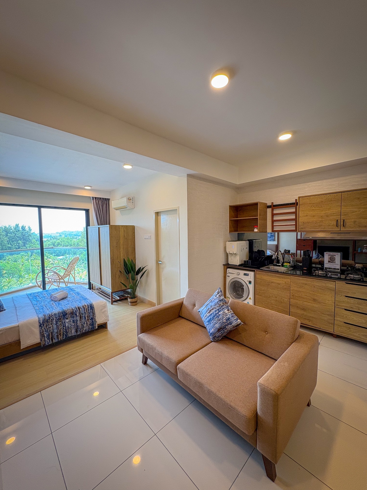 我們的房源坐落在海濱,從其東海岸位置和現代特色,包括一個客廳、套房浴室、大型電視+音箱,可免費使用Netflix Premium和Youtube Premium ,提供純粹的沉浸式娛樂、免費高速500 mbps WiFi、微波爐、COWAY水過濾器和迷你冰箱。 這裡還有私人停車場、無接觸門鎖和安全通道電梯,讓您享受現代化國際風格的住宿。