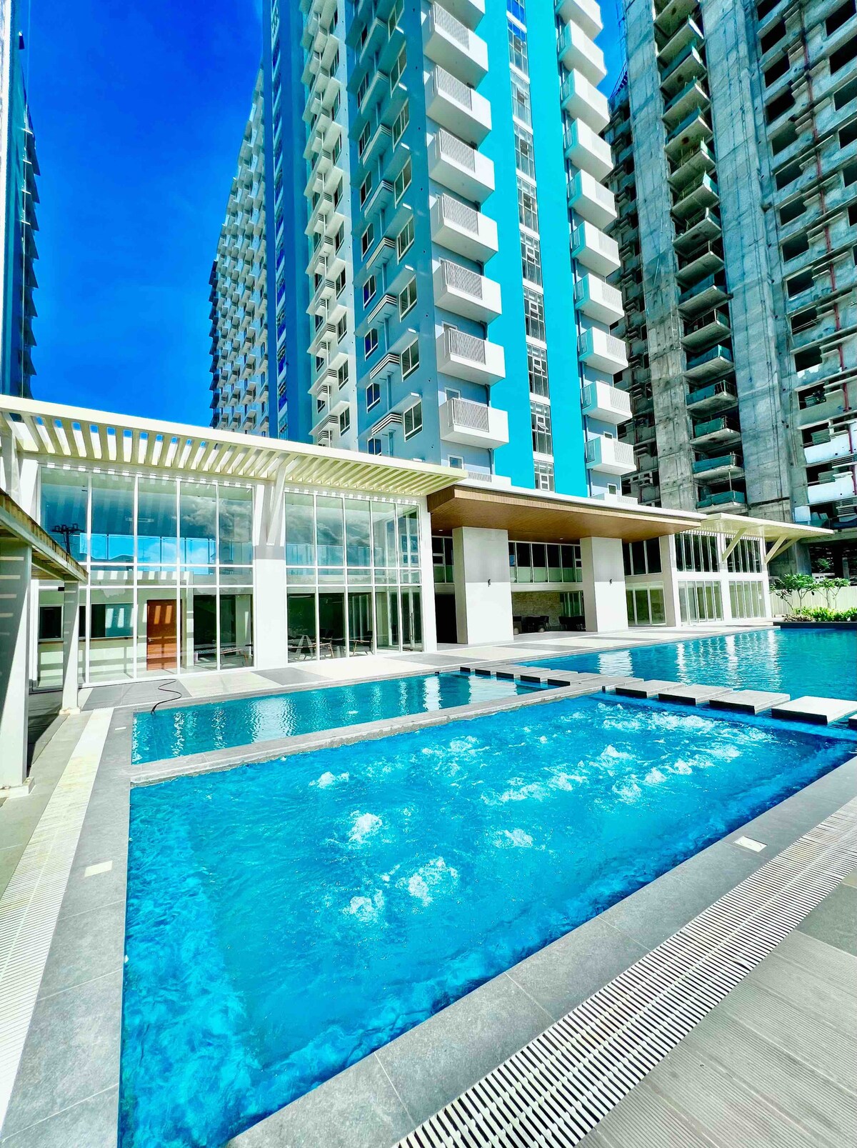 大樓中間樓層的2臥室公寓。 房間和休息室均配有空調。 它還有自己的廚房/餐廳。 開車約12分鐘即可抵達巴科洛德-西萊機場。 它不在公共交通路線上,但計程車很容易抵達。 從這裡出發,您可以搭乘Grab前往NGC、Ayala購物中心、SM和Robinsons ,價格約為250比索。 步行距離之內沒有餐廳,但開車約5分鐘即可抵達Savemore和城市市場。