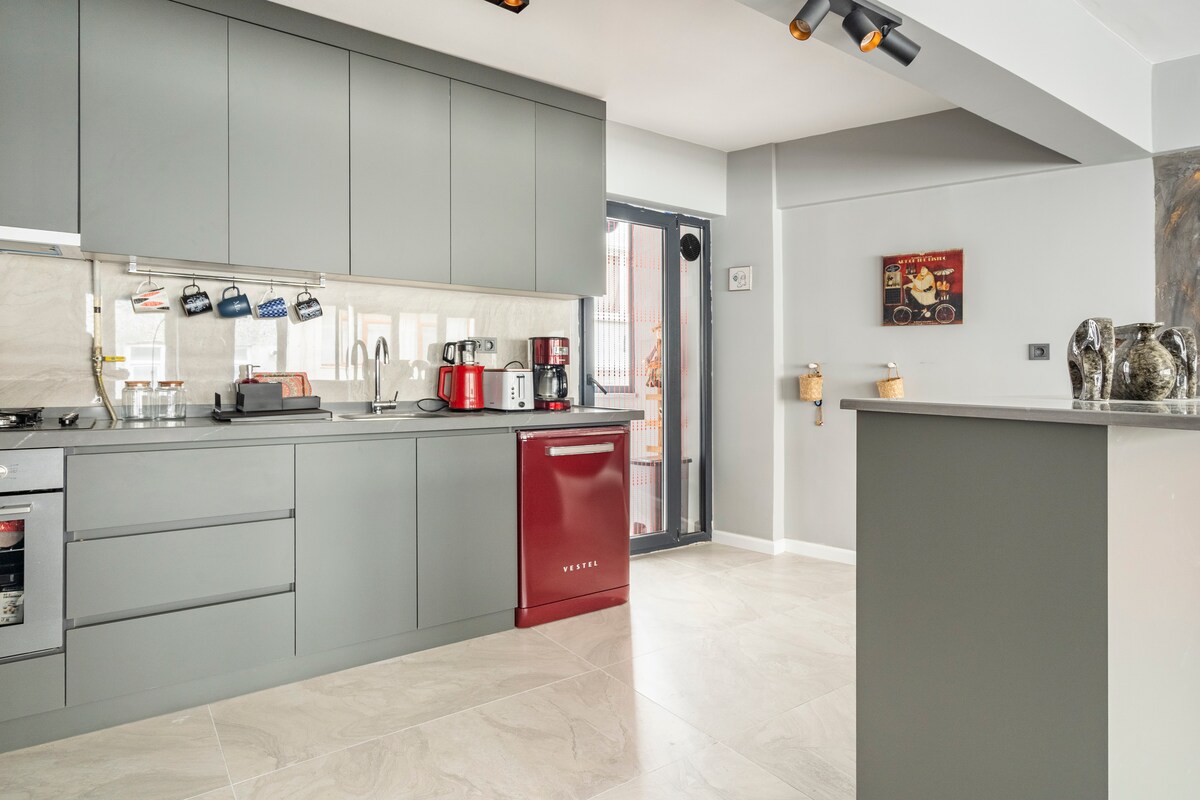 在伊斯坦堡的中心、歷史和安全的Beyoğlu區舒適而時尚的住宿如何? 我們的公寓有1間臥室、1間客廳、2間浴室和開放式廚房。 非常適合4位成人和1位嬰兒入住。 配備快速網路、智慧電視和舒適的細節,讓您感受像家一般的舒適。 其海灣窗戶增添了魅力和獨特的氛圍。 輕鬆烹飪、工作、探索附近景點和海邊。 不要只是待在貝伊奧盧,成為這裡的一部分。👍