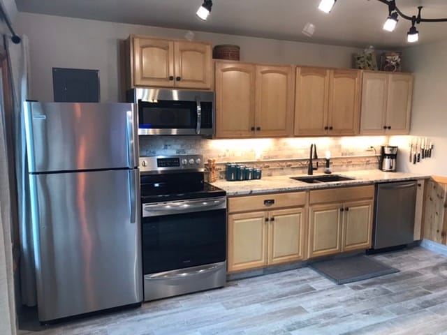 兩間大型臥室,全新標準雙人床 撞球桌和飛鏢 有新沙發床的大客廳 全新翻修的浴室 65吋超高清智慧電視、Dish DVR、藍光 泳池和娛樂設施(季節性) WiFi高速網路 設有座位的戶外露臺區域 瓦斯烤架 撞球桌和飛鏢 全尺寸冰箱/冷凍庫 對流烤箱 電磁爐 微波爐 Keurig咖啡和早餐零食 洗衣機和烘幹機 靠近Rapid City購物和用餐 自然與野生動物 晚上可以看到美麗的星星!
