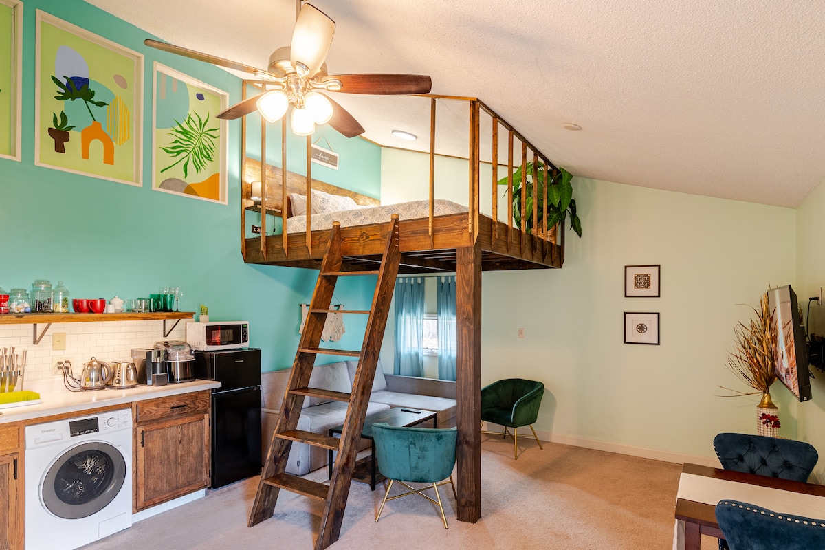 Cozy loft with parking and private patio w/ grill
