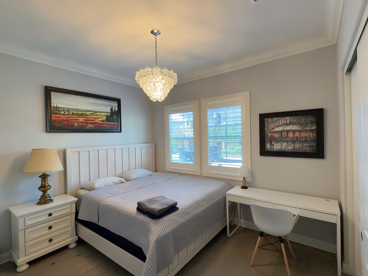 迪士尼樂園和安納海姆會議中心、安納海姆本田中心/體育場、加州大學爾灣分校醫學中心、查普曼大學、橙色圈附近的大型改造單間公寓。非常高端的Serta加大雙人床。全套廚房。獨立衛浴。 輕鬆前往高速公路。靠近Target、餐廳、In and out burger和超市。 漂亮安靜的社區。免費停車。在您的套房觀看7月4日煙花。最少兩晚。