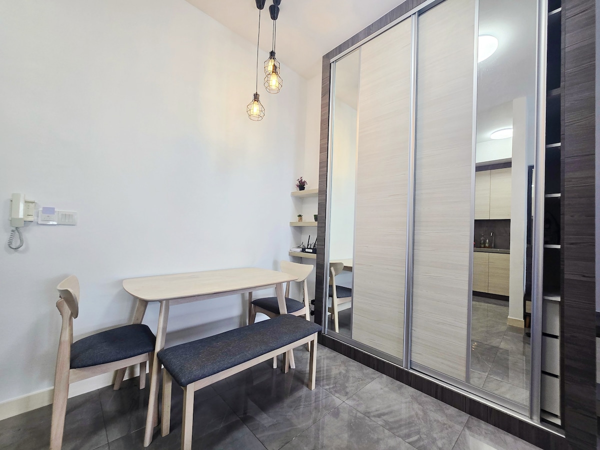 ✅ WiFi ✅ Smart TV ✅ Netflix ✅ 1 Free Parking ✅ 2 King Bed ✅ Iron & Ironing Board ✅ Hair Dryer ✅ Hangers ✅ Mineral Water (Amount based on no of guests) ✅ Refrigerator ✅ Water Boiler, Plates, Cups, Scissors, Spoons, Forks, Chopsticks, Fruit Knife, Chopping Board ✅ Shower Gel & Shampoo (Tube) ✅ 1 Bubble Bath (Not bath bomb) ✅ 4 Towels ✅ 1 Bath Tub ❌ Kitchen Appliances (only water boiler provided) ❌ Washing Machine / Dryer ❌ Toothbrush & toothpaste