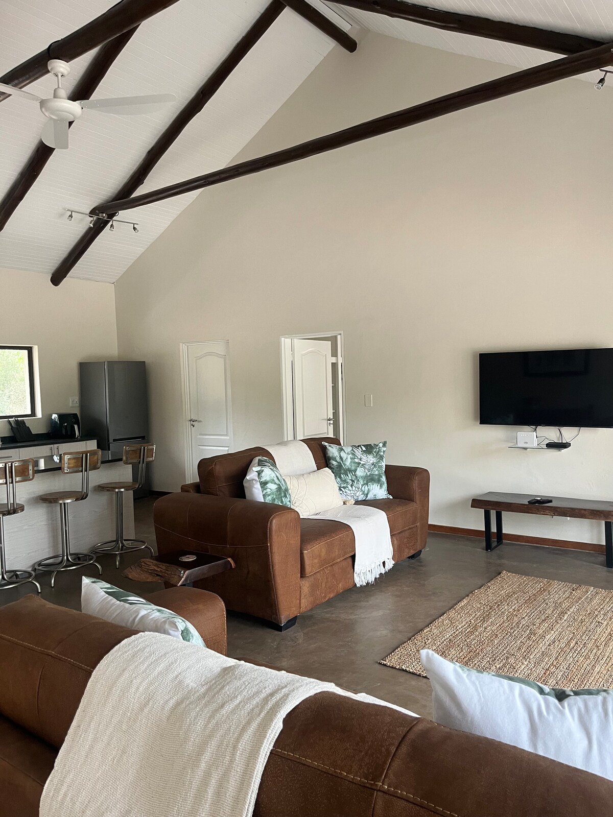 Kendricks是一間美麗的四臥室小屋,可俯瞰80公尺寧靜的開放式河景。 這是與親朋好友一起享受Mbuluzi Game Reserve寧靜的完美選擇。 Kendricks 最多可入住 8 人,共有 4 間套房臥室。 所有房間均配有加大雙人床、豪華床單、風扇和空調。 所有套房浴室都有淋浴間,其中一間浴室還有室外淋浴間。 所有區域和臥室均有 Starlink WiFi 請為您入住的人數預訂。