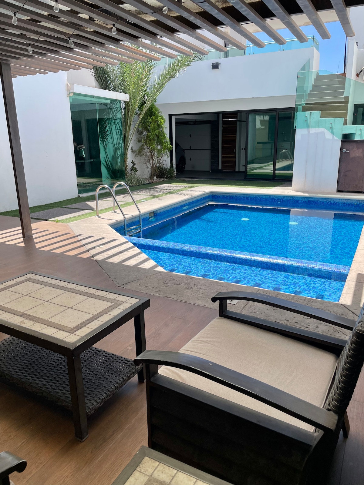 歡迎來到我們的豪華別墅,配備私人泳池和露台。 寬敞的房屋,有 3 間臥室,每間都有自己的浴室。家具齊全,設有冷藏設備,車庫可停放 4 輛車,並設有私人泳池和露台。 我們還提供額外收費的活動租賃選項。 一樓有寬敞的泳池、烤肉區和半間浴室。 在樓上,您會發現我們的三間臥室、兩張加大雙人床和一張雙人床,每間都有自己的浴室