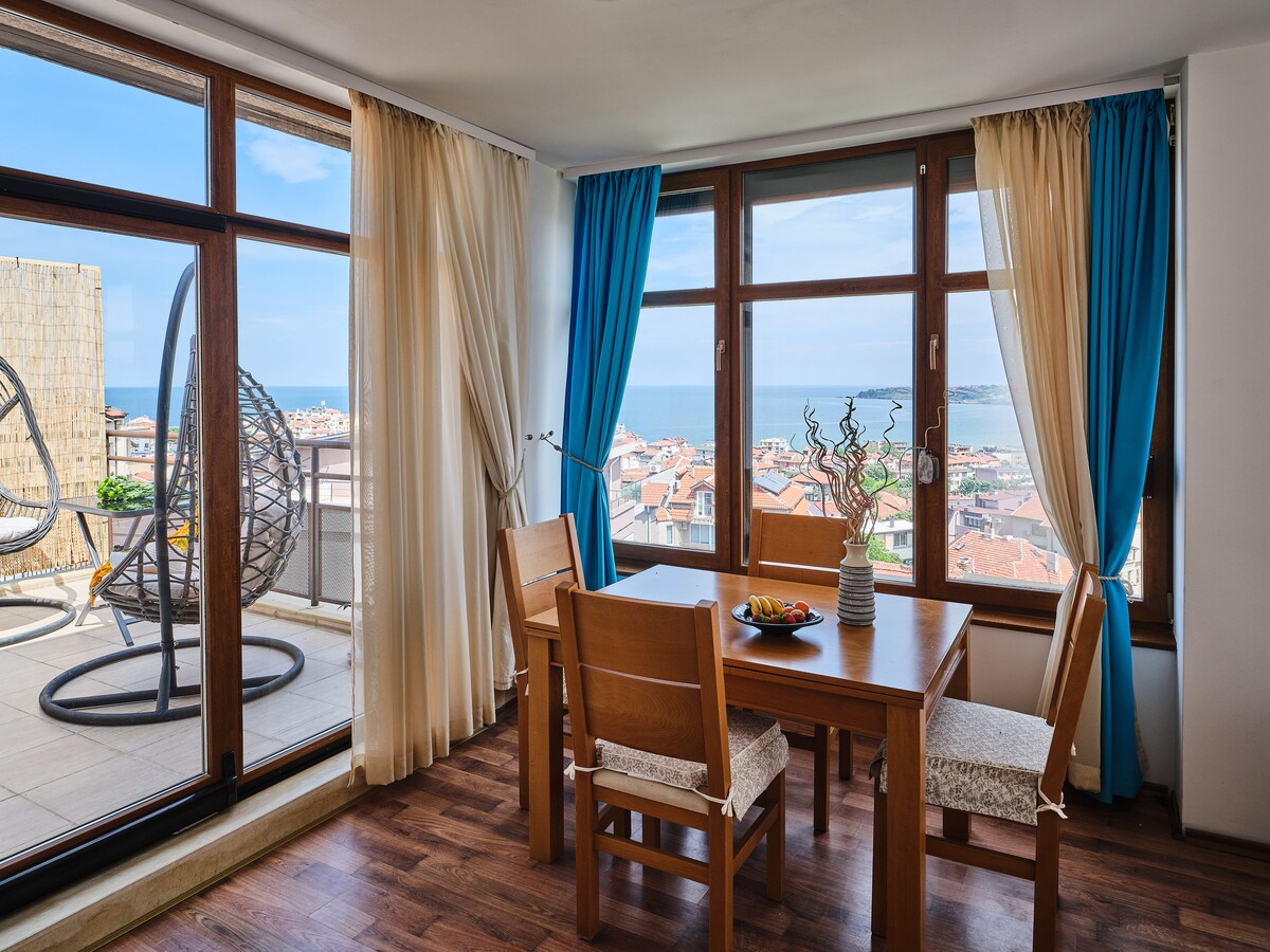 迷人的家庭友善頂樓公寓。 從我們可愛的兩層頂層公寓體驗索佐波爾(Sozopol),欣賞迷人的海景和寬敞的露臺! 這間獨特的125平方公尺單間公寓步行6分鐘即可抵達城市海灘和歷史悠久的舊城區,專為欣賞特色的人設計。 探索附近的傳統木屋、沙灘和令人愉悅的咖啡廳。 24小時免費停車位。 非常適合在保加利亞最美的沿海小鎮創造難忘的家庭回憶。