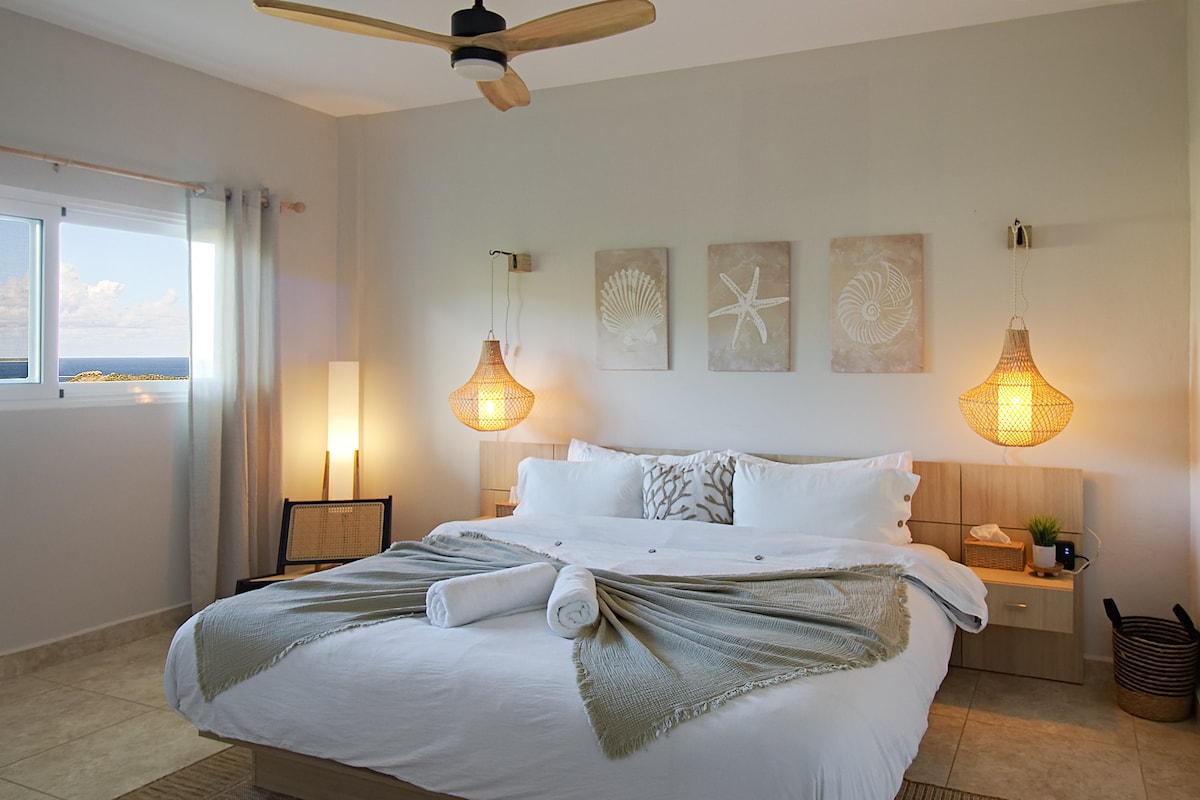 獨特的概念設計,建立在我的家的頂層。從頂層公寓的中心,360度日出/日落景觀。藝術創作圍繞著您,露天浴室、私人三溫暖和按摩浴池,可俯瞰辛普森灣(Simpson Bay)。 來探索未來假期的另一個世界。 期待盡快與您見面