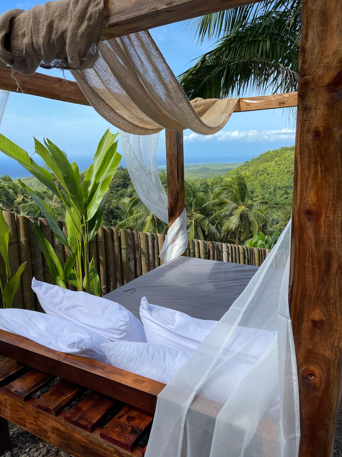我們不在海灘或主要道路上。 Paliton Beach距離約5分鐘,Siquijor Port距離約15分鐘,可騎摩托車或開車,並提供停車位。 明亮的二樓房間,可欣賞熱帶花園和天然泳池的美景。 配有1.8 × 2.0公尺的特大床。 旅客可以享受Starlink Wi-Fi、可靠的太陽能電力,並可使用我們的天然過濾90㎡泳池。