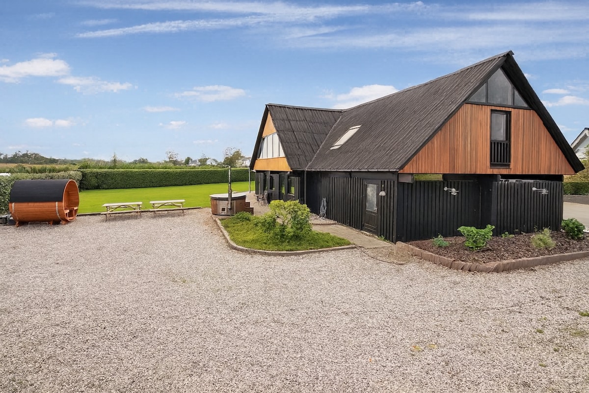 在一個時尚的別墅中享受假期,擁有您想要的所有設施。從別墅可俯瞰東面的大海,因此您可以在享用早餐時欣賞日出。 您住在森林和田野旁邊,距離海灘僅300公尺,有很好的游泳設施和豐富的釣魚機會。別墅有4間獨立臥室,其中一間有閣樓。2間浴室,其中一間有雙淋浴間和桑拿房。寬敞的客廳,有壁室。室外有戶外水療中心和室外淋浴、用餐區、日光浴躺椅和烤架。