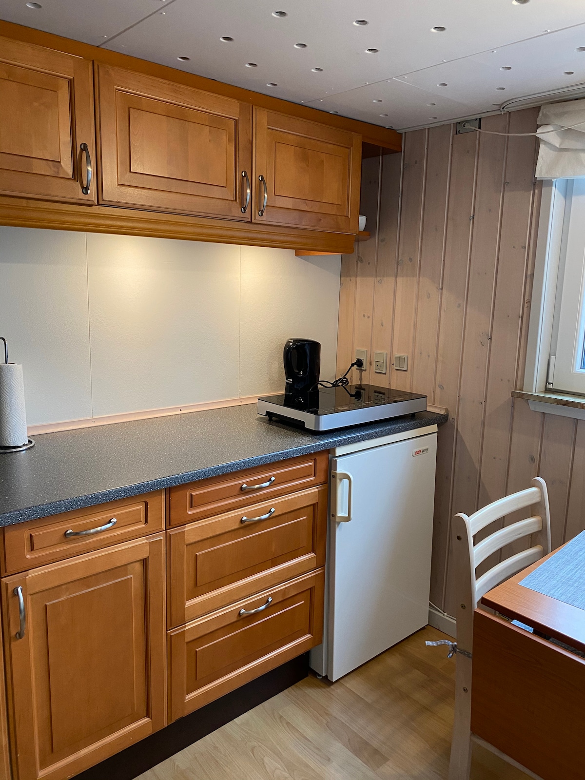 公寓面積為14平方米,是一間大房間,還有2張牀和一張沙發牀,可以敲掉。 室外廚房配有水和燒烤(外面只有水)。 公寓設有小廚房,配有2個電熱板、咖啡機、電水壺和微波爐。 浴室和馬桶位於公寓旁邊。 您必須出門才能進入浴室。 距離市中心1.6公裏,距離海灘1.9公裏。 帶毛巾的牀上用品套餐可購買,每包80kr。