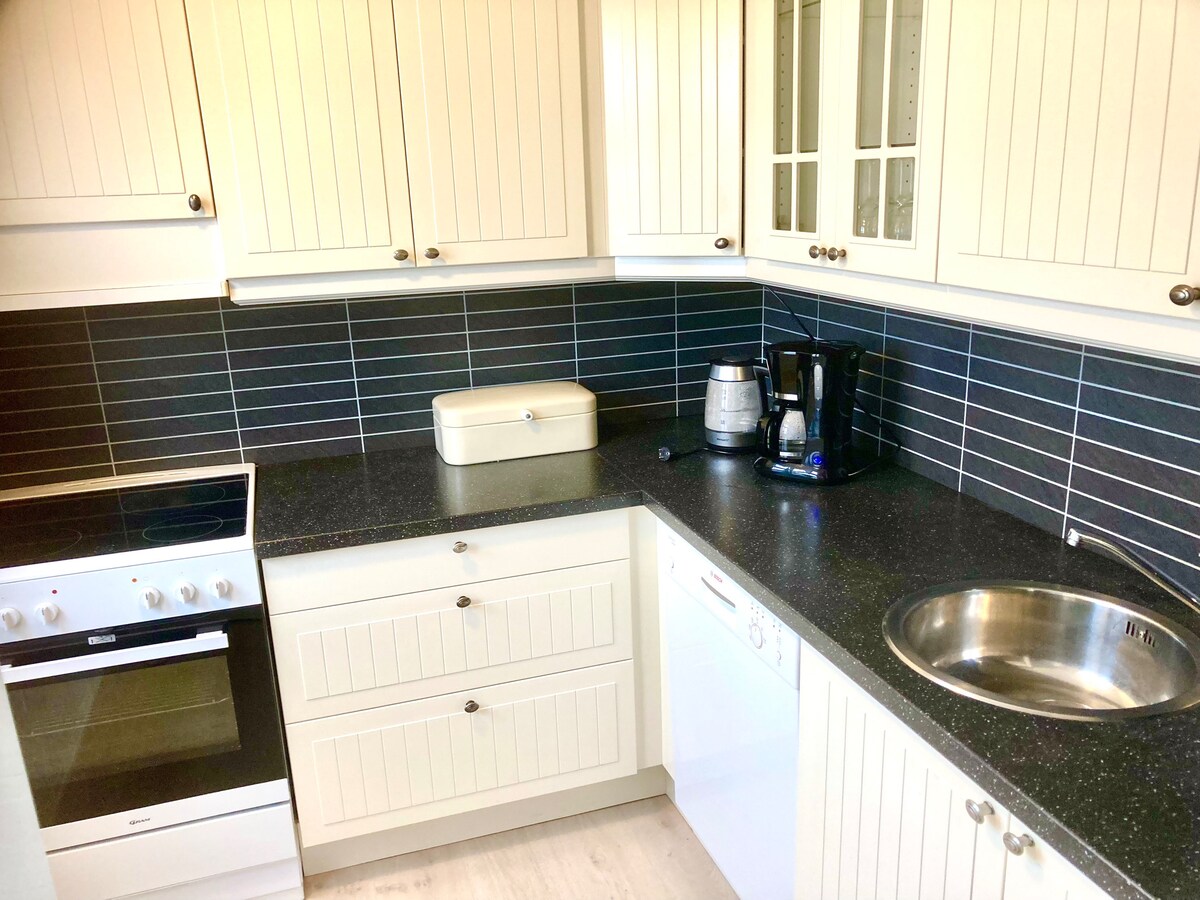 位於市中心安靜環境的舒適公寓。 獨立入口和停車場就在大門外。距離公園150公尺,有兒童遊樂場和攀巖公園,距離可愛的海灘200公尺,距離麵包店和魚店200公尺,距離雜貨店300公尺。 靠近港口,有渡輪前往Hirtshals。 Larvik火車站約: 2公裏 附近有不錯的步行區域。