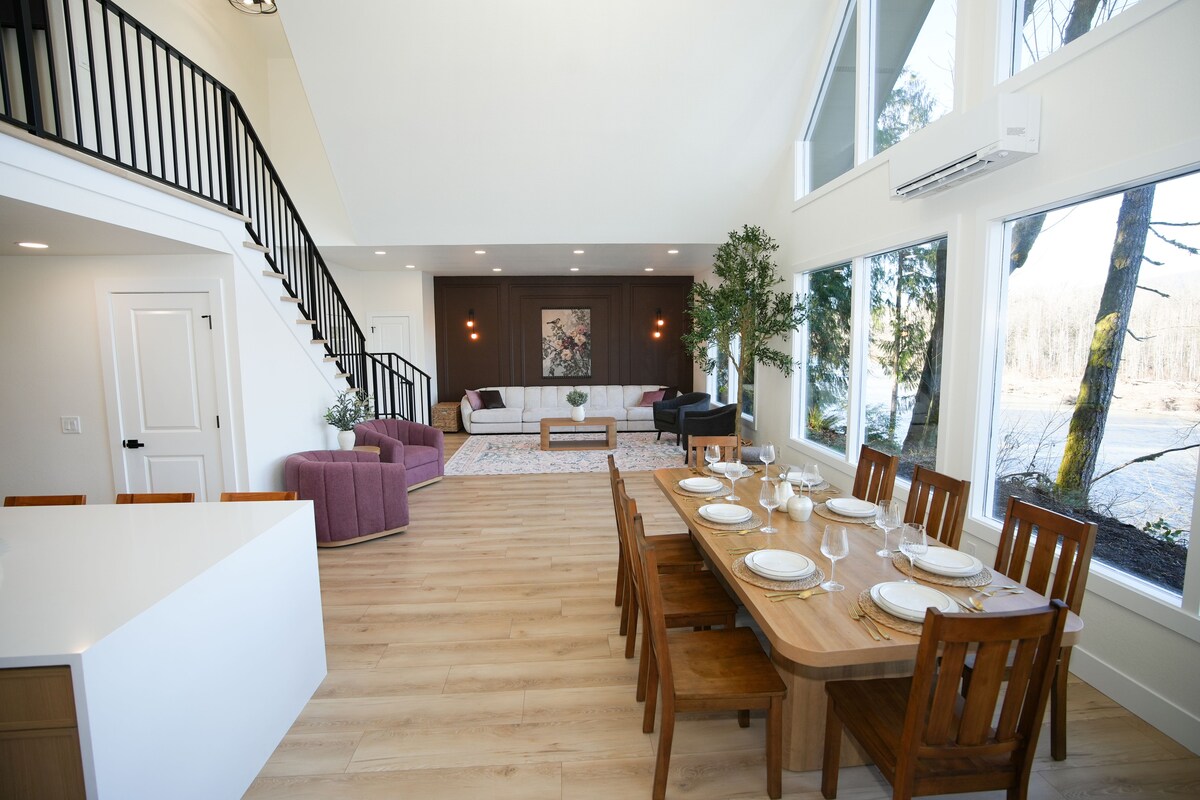 Nestled in the beautiful North Cascades, Riverside Retreat brings the tranquility of PNW. Unwind with a perfectly brewed coffee from the coffee bar, relax in the hot tub, all while admiring the rushing river and the mountain views from the property. This riverfront property near the North Cascade National Park is truly an experience, awaiting your arrival Fully equipped kitchen and bathroom, high speed wifi, indoor fireplace, outdoor firepit, game room, BBQ grill
