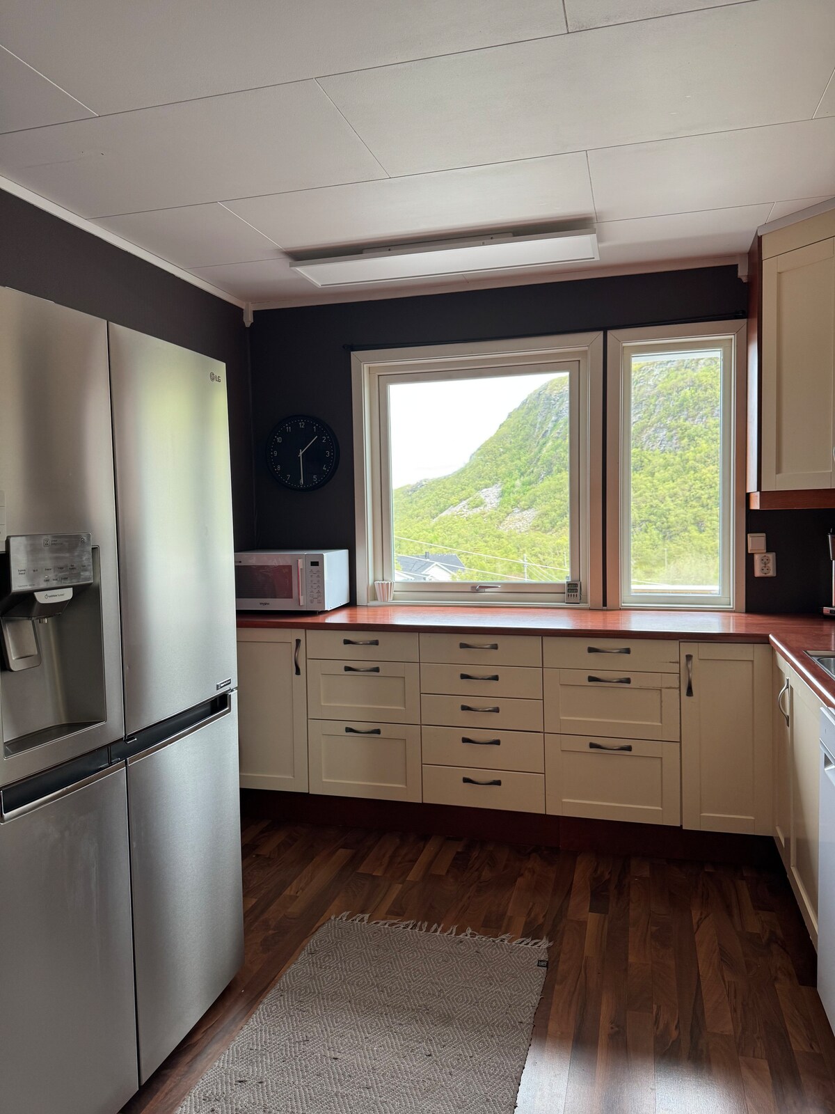 這是我們全新的度假屋。靠近大海,在一個美麗安靜的地方,周圍有驚人的景觀和大自然。您可以在外面看到北極光。開車前往Skjervøy僅需15分鐘,您可以在那裡參加鯨魚和虎鯨野生動物園之旅。大山可供徒步旅行和滑雪。可開車到前門。大型開放式廚房/客廳。2間臥室(3間臥室可額外使用)。大浴室,配有桑拿、大浴缸和淋浴間。Apple TV、WiFi和內置空調/熱泵。最多可入住7人。