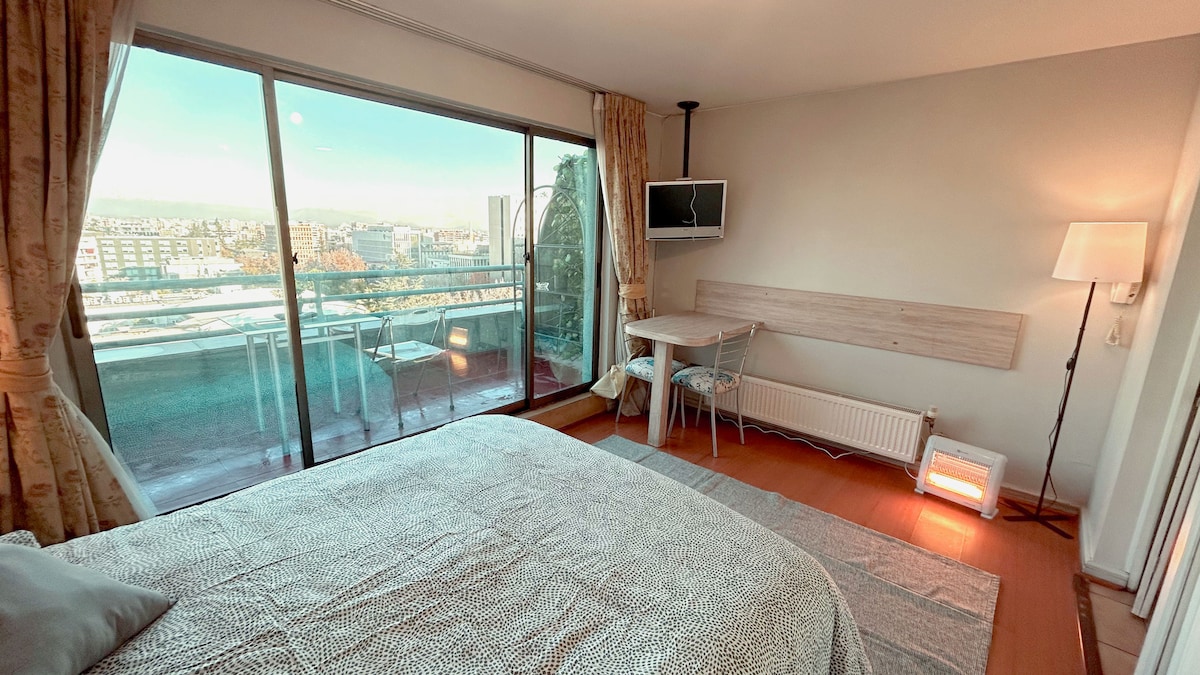 位於 Ñuñoa 與 providencia 交界處的內部房間,有獨立入口。配有洗碗機、微波爐、烤麵包機、迷你吧、水壺和 2 人用餐具、獨立浴室、露臺和停車位。 地理位置極佳,步行 10 分鐘即可抵達 Francisco Bilbao 地鐵站,距離迷你市場、餐廳等僅幾步之遙。 包括床單