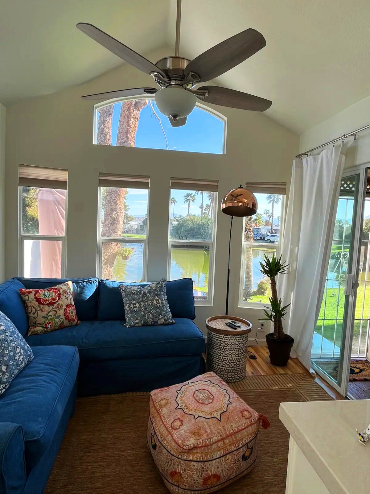 Welcome to your Island Away-Seas! Tropical minimal with a hint of mid-century modern, the Mango House will give you the cabana vibes you need to unwind from daily life. Perfectly located in between Palm Springs (20-25 min ride), Coachella Valley (15 min ride), and Joshua Tree, a 40-min scenic cruise, relax on the deck while enjoying the beautiful lake view against the desert mountains. You will have full access to all of the resort amenities including the healing mineral pools, gym & more!