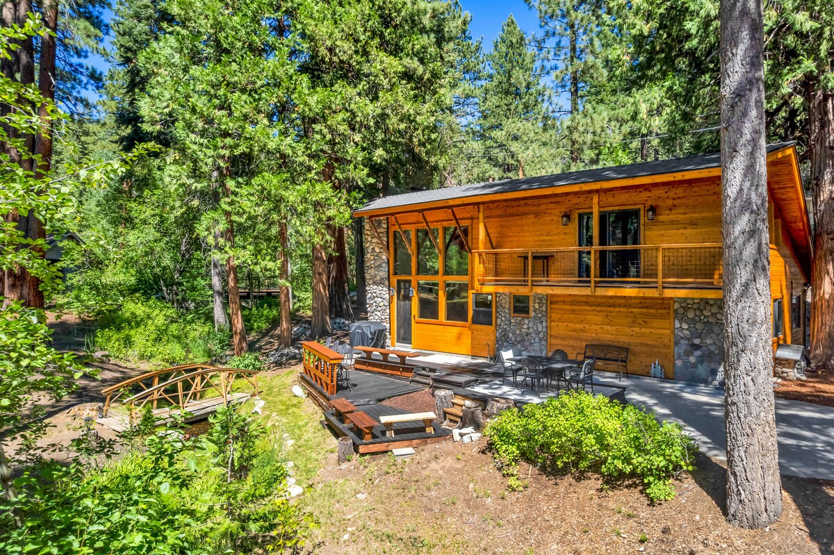 這棟 1970 年代的小木屋坐落於太浩湖西岸的樹林中,由藝術家打造,感覺就像您自己的樹屋一樣,而且距離一個安靜的社區碼頭和海灘只有 10 分鐘路程。 在湖邊或步道上度過美好時光,然後回到家中享受按摩浴缸、舒適的休息空間,以及可以觀星的天窗閣樓。 非常適合情侶、朋友或小家庭入住。