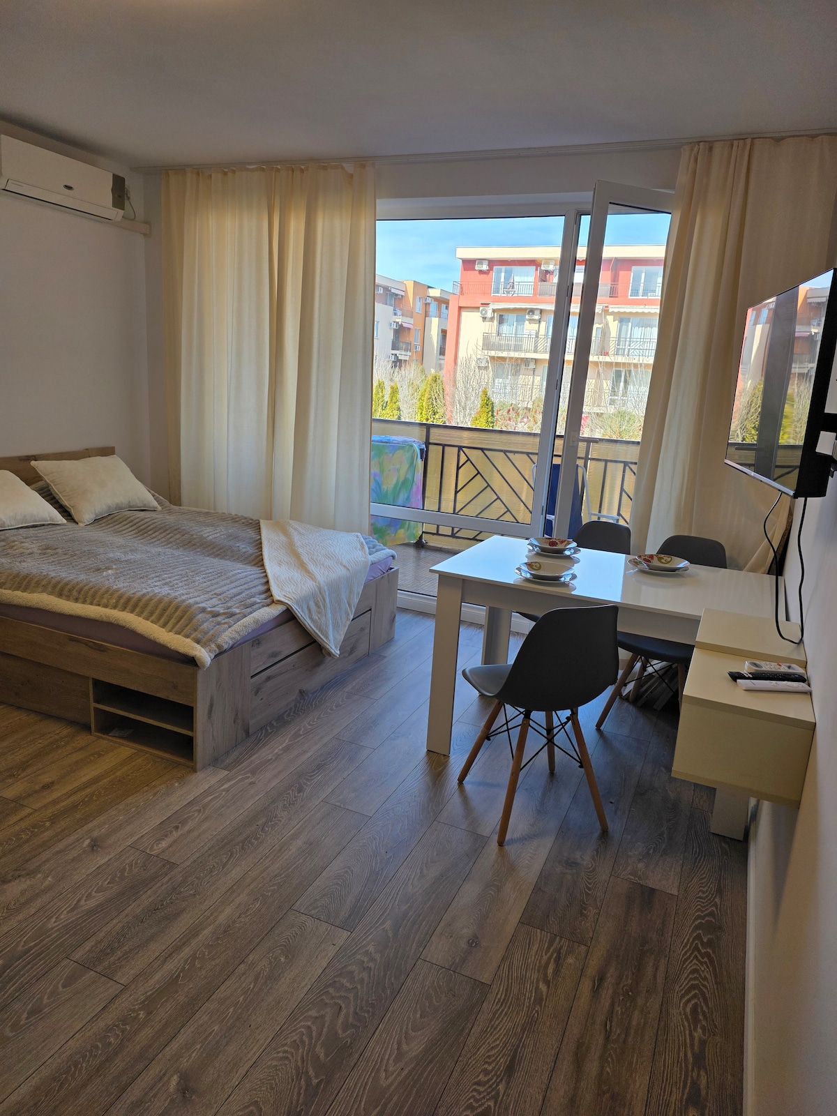我們喜歡保加利亞,我們的公寓距離黑海海岸僅6公里,坐落在Stara Planina山脈腳下。有2間餐廳、1個露臺和1個室內。Kosharitsa村步行15分鐘,至少有3家餐廳供應國際美食和保加利亞特色菜餚。您必須嘗試豬肉Kavarma配上Shopska沙拉!大樓安靜祥和,從不太忙,夏季天氣非常炎熱。保加利亞是物超所值的體驗