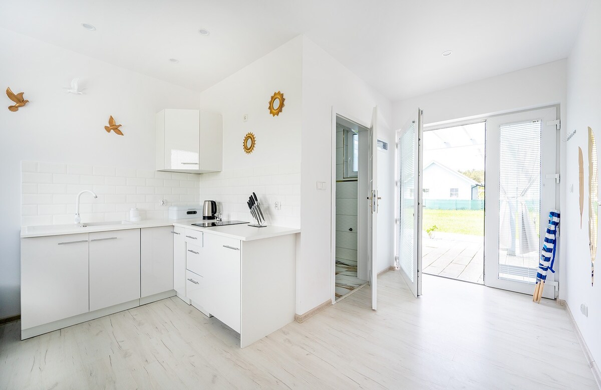 74 平方公尺的舒適房屋,配有私人水療區(熱水浴缸和乾式桑拿 - 獨家,無須支付額外費用)。 有圍欄的地塊能讓你有自己的空間和隱私。 2 間臥室(每間臥室有 160x200 公分的床和 120x190 公分的沙發床)。 其中一間臥室的全景窗戶可欣賞美麗的景色。 露臺上有瓦斯烤架、大型餐桌和6張椅子,以及舒適的搖椅。 日光浴床和沙灘遮蔭。 2個停車位。