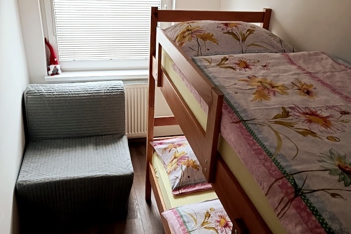 This place's real value does not lie indors, but outdoors. It has a spacious terrace, a garden with fruit trees and open access to the meadows and forest. Tourist tax (2,5 €/person/night) is included in price! It is comfortable for 2 adults. For 3 it is a little crowded. If you have someone along who would like to camp in the garden, feel free to do so. Just make sure to note this in reservation. Warm welcome!